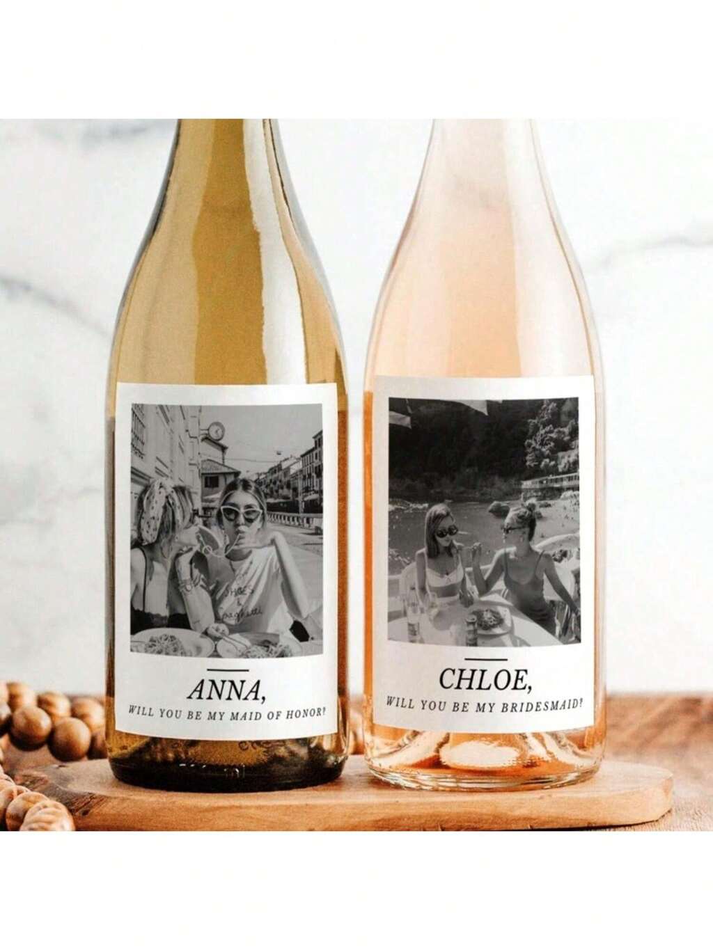6PCS Wine Label Waterproof Party Custom Wine Label – Black & White Photo, Capitalized Design – Bridesmaid, Maid Of Honor Proposal, Wedding, Anniversary, Engagement, Birthday, Graduation, Housewarming, Valentine's Day, Mother's Day, Father's Day; Reusable, High-Quality, Stylish, Personalized Ornaments