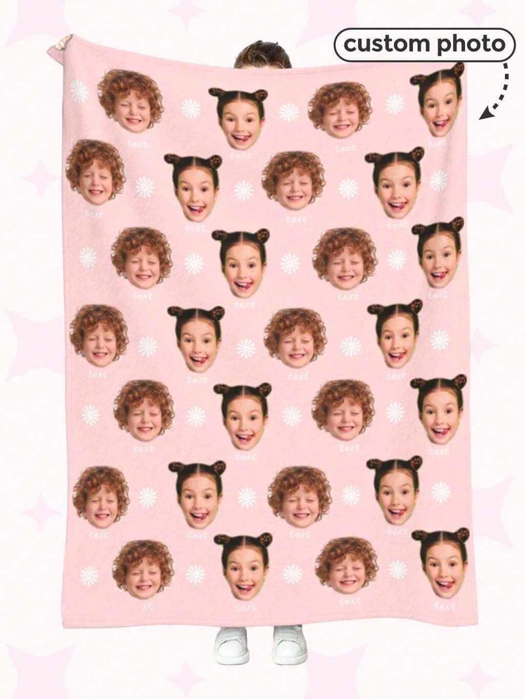 1pc Customized Photo Blanket, Personalized Photo Memory Blanket, Ideal Gifts For Friend, Family, Him, Her, Boyfriend, Girlfriend, Mom, Dad. Cozy, Warm, Comfortable, Washable Throws For Sofa, Bed, Car, Bedroom, Living Room. Perfect For Anniversaries, Christmas, Valentine's Day, Mother's Day, Father's Day, Graduation, Birthdays, Weddings, Housewarming. Unique Custom Gift For Kids.