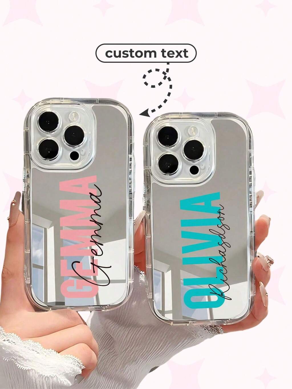 Cute Pink Mirror Element Customized Fashionable Heart-Shaped Letter Signature Design Pink & Apricot Mirror Short Phrase Name Phone Case Protective Cover Compatible With IPhone 11 Pro/13 Pro/15 Pro Max, XR, 12, 13, 15, 16 Pro Max, Travel Organizer Birthday Gift