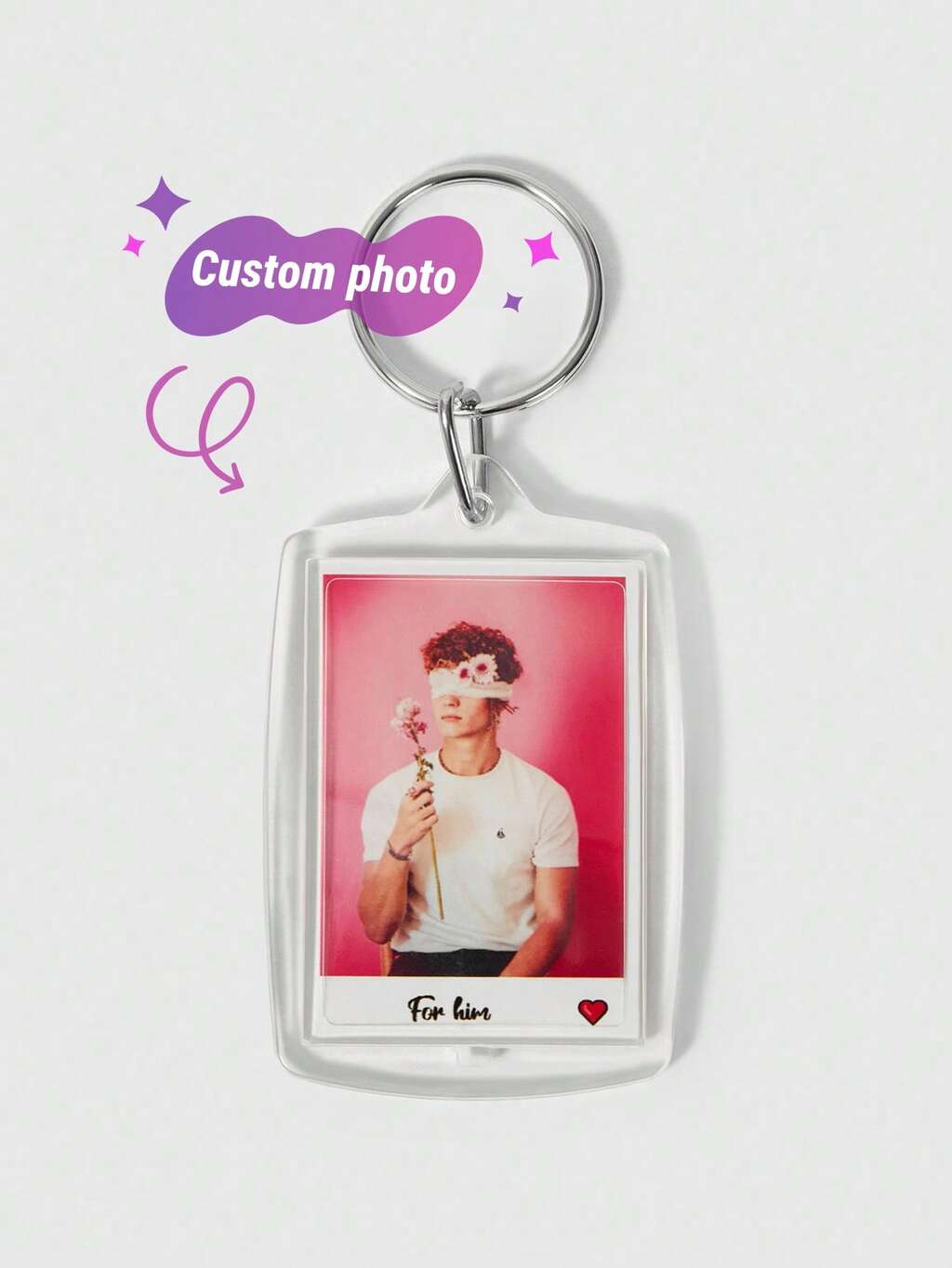 Custom 1pc Photo & Text Keychain, Personalized Acrylic Keychain, Custom Couple Gift, Photo Key Ring, Valentine's Day, Birthday, Anniversary, Unique, Stylish, Colorful, Cute, Funny, Kawaii, Y2K, Unisex, Custom Gift For Him, Her, Boyfriend, Girlfriend, Family, Friends, School, Office, Classroom, Teacher, College, Dorm, Boys, Girls, Teens, Middle, High School, University, Freshman, Sophomore