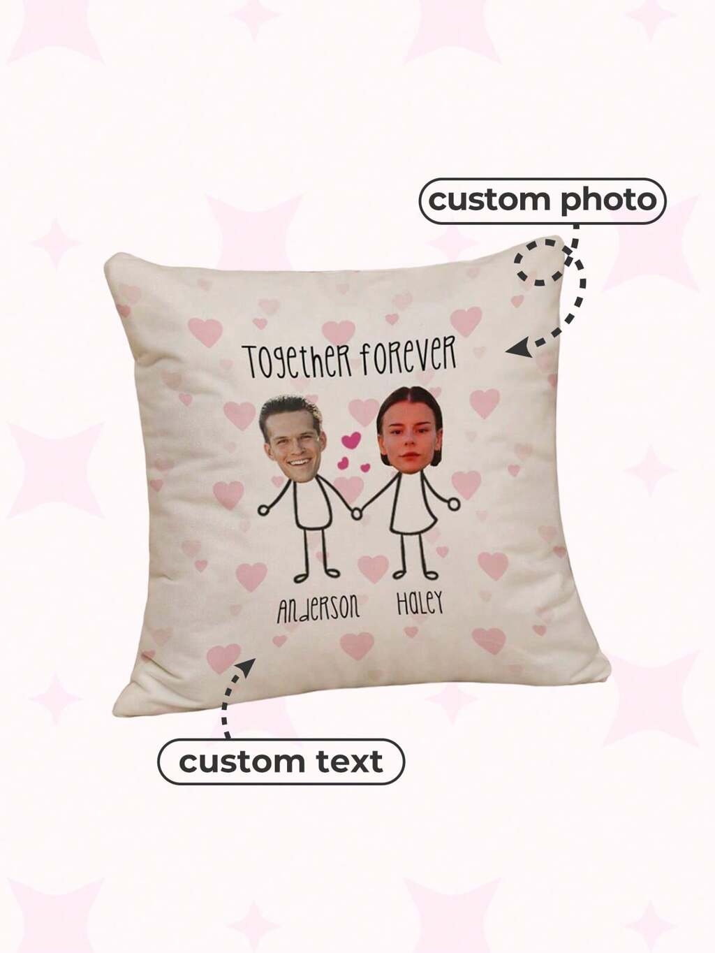 1PC Pillow Cover Comfortable Texture Christmas, Customized Photo Cushion For Wedding Anniversary, Couple, Family, Baby Photo, Valentine's Day, Christmas, Thanksgiving, Mother's Day, Father's Day, New Year, Birthday, Graduation, Housewarming – Great For Sofa, Bed, Car, Tea Room, Bedroom, Living Room, Dining Room